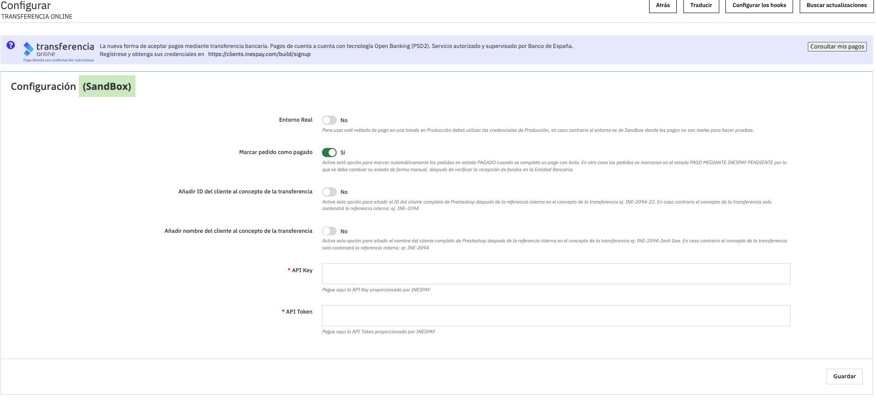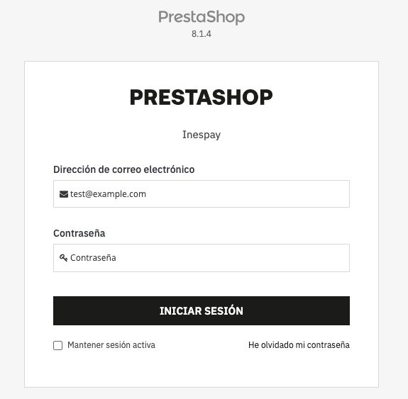 2. Introduce las credenciales y detalles que Inespay te haya proporcionado